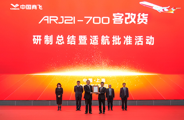 2023年1月1日,ARJ21飞机客改货设计更改项目正式获得局方批准,标志着ARJ21项目系列化发展跨出更加坚实的一步,意味着我国商用喷气式货机发展取得实质性突破。1月6日,中国商飞公司在设计研发中心举办研制总结暨适航批准活动。