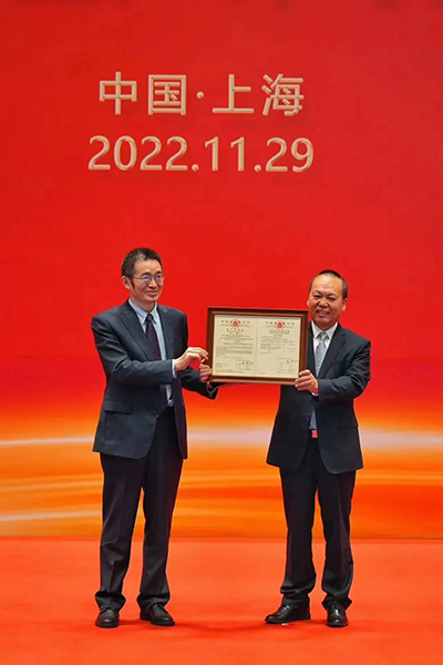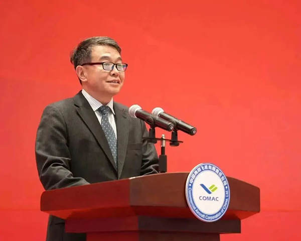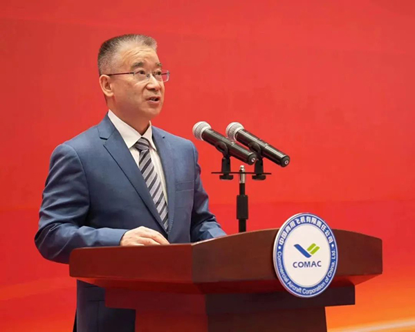 民航华东地区管理局局长姜春水向中国商飞公司党委副书记、总经理赵越让颁发生产许可证