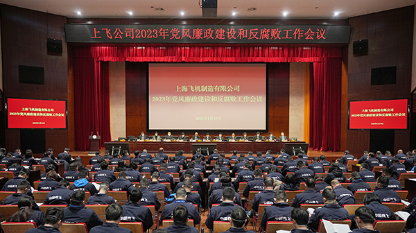 1月19日,上飞公司召开2023年党风廉政建设和反腐败工作会议,深入学习贯彻习近平总书记重要讲话和二十届中央纪委二次全会精神,学习贯彻国资委党风廉政建设和反腐败工作会议暨警示教育大会、十二届上海市纪委二次全会、中国商飞公司党风廉政建设和反腐败工作会议精神,总结上飞公司2022年党风廉政建设和反腐败工作,部署2023年工作,为开启C919批产交付新征程、建设世界一流标杆工厂,营造风清气正的干事创业氛围。