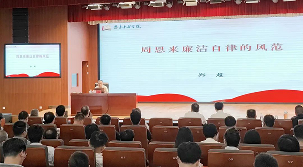 ▲恩来干部学院副院长郑超作题为《周恩来廉洁自律的风范》专题讲座