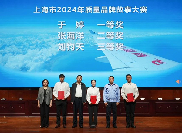 ▲公司领导为上海市质量品牌故事大赛一、二、三等奖获得者于婷、张海洋、刘钧天颁奖