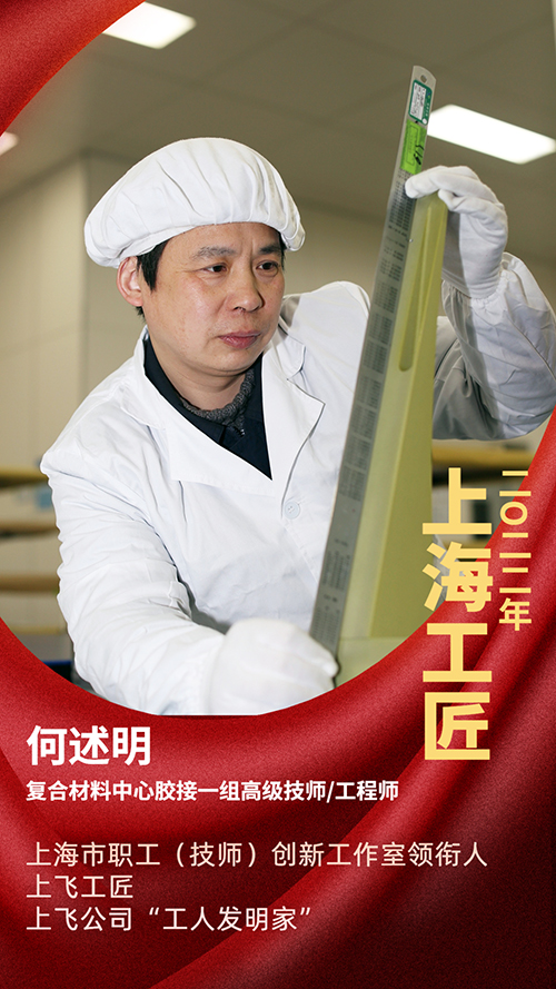 近日,由上海市总工会组织评选的2022年度“上海工匠”培养选树活动结果揭晓,复合材料中心胶接一组高级技师何述明获评2022年“上海工匠”。