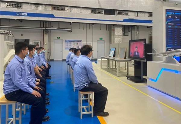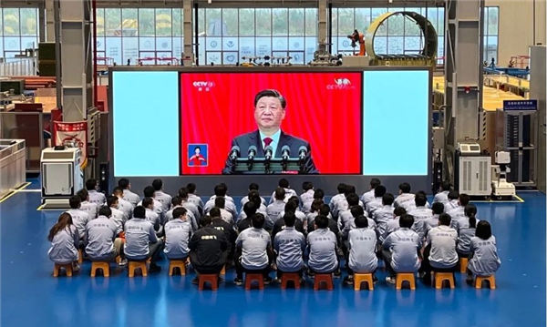 虽然是周日,一大早,很多干部职工就选择提前来到公司,坚守在型号生产线上,以奋斗迎接这一历史时刻。10时整,大会开始,上飞公司党委领导班子成员、8级及以上人员、型号现场人员代表等共250余人,分别在A09大报告厅及C919总装生产线现场,集中观看会议直播。2个小时里,现场秩序井然。会上习近平总书记所作的报告,感染着在场观看的每一个人,大家挥动手中的党旗、国旗,在听到“金句”时认真记录,在朋友圈“刷屏”转发,并不时发出阵阵热烈掌声。每个人的脸上都洋溢着自豪和幸福。