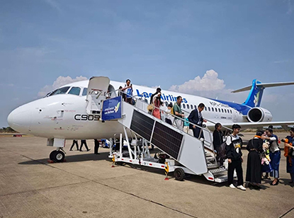 2025年4月12日,由老挝航空C909飞机执飞的QV331航班,从老挝万象瓦岱国际机场起飞,于北京时间11时17分顺利抵达巴色国际机场,圆满完成首次商业飞行。